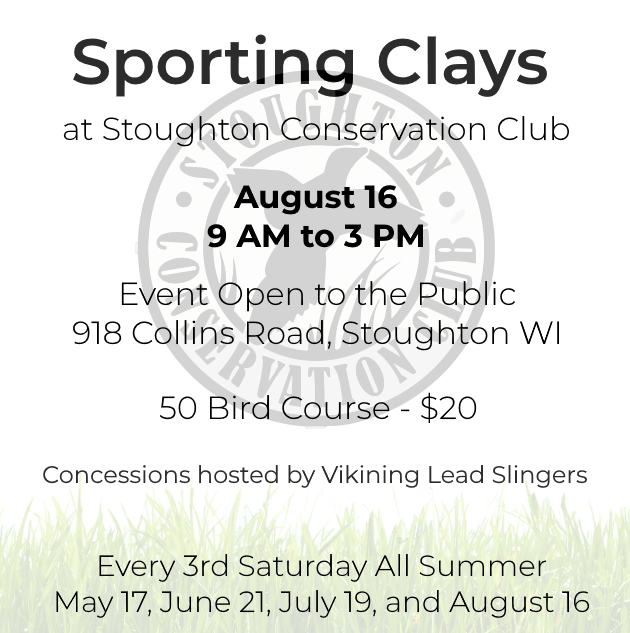 The Viking Lead Slingers are hosting TRY TRAP FOR FREE! This event is for kids who want to learn how to shoot trap and skeet. All kids are welcomed to come out and try it. You don’t have to be a member or even from Stoughton.