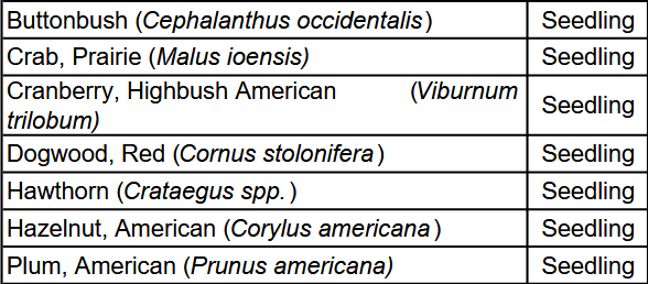Each SCC member may order up to 200 total trees and/or shrubs in groups of 50. For example your order might be: